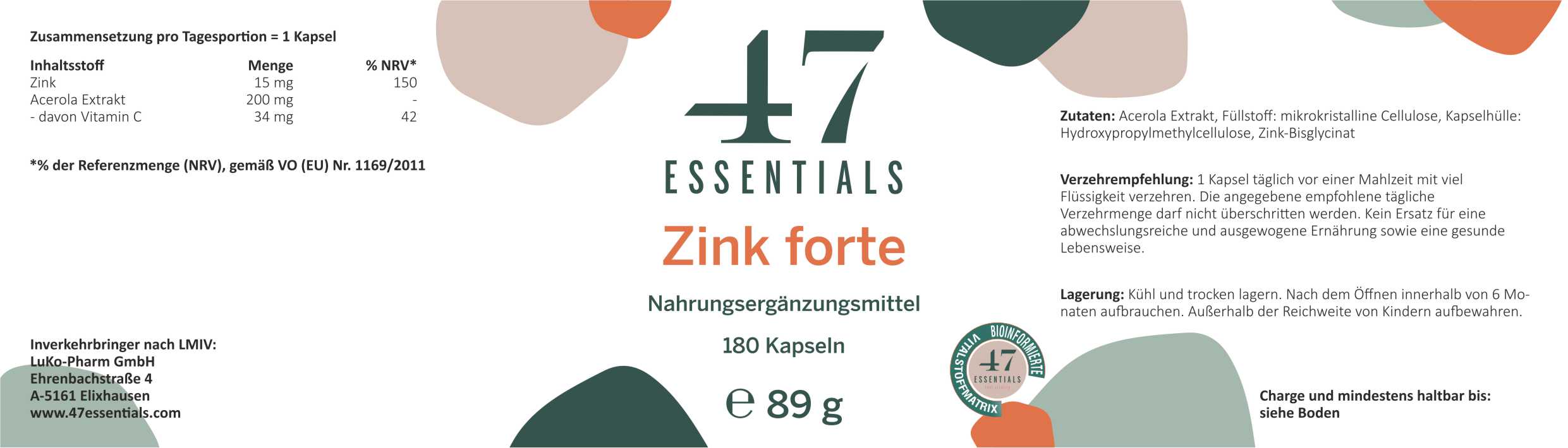 Zink-Bisglycinat, Acerola-Extrakt (Vitamin C), Füllstoff: Cellulose, Kapselhülle: Hydroxypropylmethylcellulose